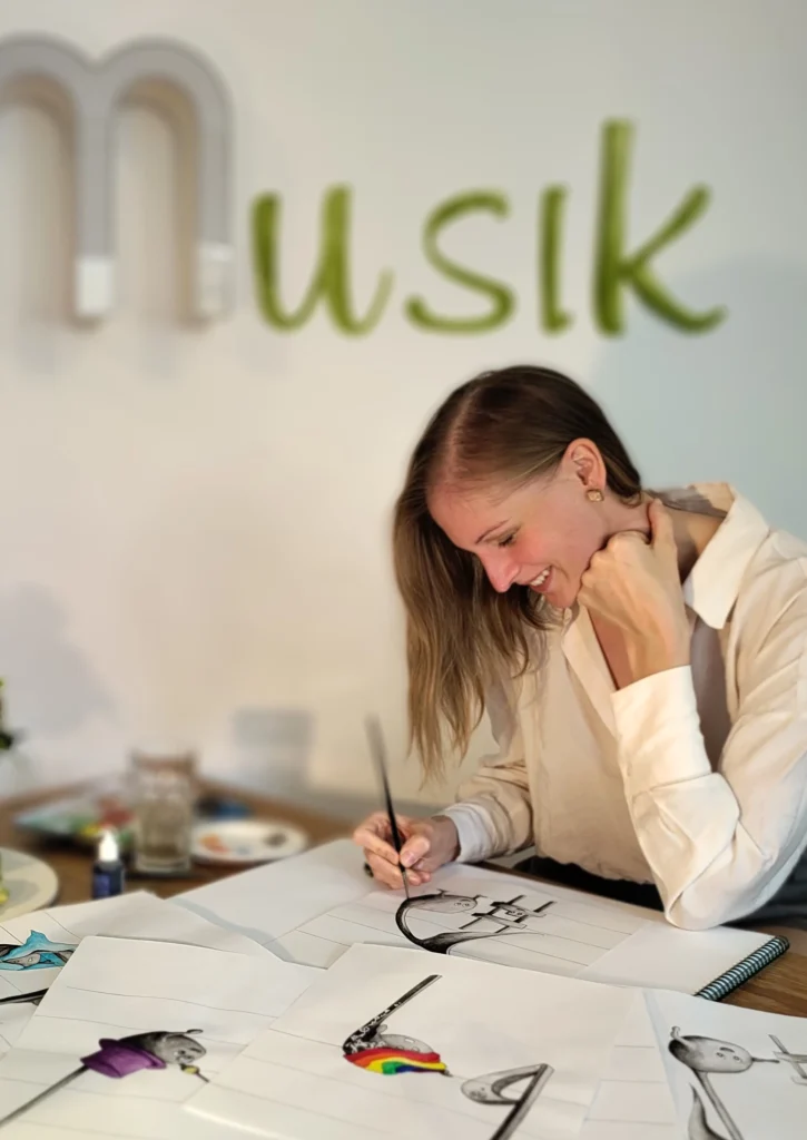 So entsteht eine bunte, lebendige Notenwelt, in die die Kinder mit jedem Bild ein kleines Stück tiefer eintauchen können – eine Welt voller Musik, Fantasie und Farben, die vielleicht ihr Herz zum Lächeln bringen wird.